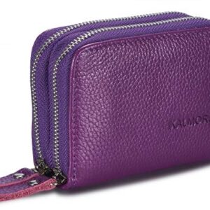 KALMORE Women's Leather RFID Secured Spacious Cute Card Wallet Small Purse, Purple, Two Zippers