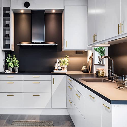 • 💫【Widely Compatible】- Suitable for different styles of cabinets, use these gold hardware to decorate your cabinets or update some old furniture,bring you a modern look. Very stylish and unique. Ideal for kitchen, bathroom, bedroom, cabinet, drawer, dresser, door, cupboard, wardrobe, closet. Smooth and clear stainless steel handles, great helper to pull out drawer soon and conveniently.